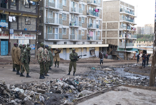 Elsewhere, in Kibera, there was tension and riot police went in, though by the time I arrived, the situation had stabalized. Two people were reported killed. © Anne Holmes